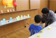 お友だちも誘って、的あてや、輪投げや、魚釣りや、射的や、プラ板やを会員みんなで出店。