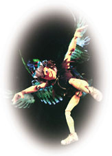 部屋の片隅で静かに眠っているピエロのウイ。夢の中、小鳥のさえずりで目を覚まし、見えない翼をひろげ空を飛ぶ。やがて素敵なブランコを見つけ、ブランコをこぎはじめるウイ……。糸あやつりの人形が命を宿し、生き生きとした表現で観客を魅了します。