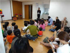 参加者のお誘いもチラシ作りも司会も、若いママたちが頑張りました。 子どもたちも会場つくりに参加しました。